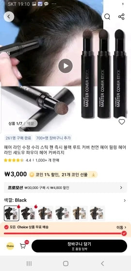 Use the root cover stick to fill gaps and soften edges. Lightweight powder blends with hair color, creating a natural hairline that hides receding areas and restores a fuller appearance instantly and discreetly.